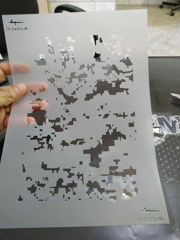 O Molde Stencil Camuflado Digital tem as seguintes medidas:
