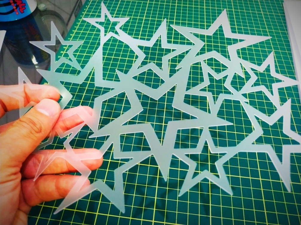 O Stencil Estrelas Grudadas tem o formato folha A4 com medidas de 21 × 30 cm e o desenho tem as seguintes medidas: