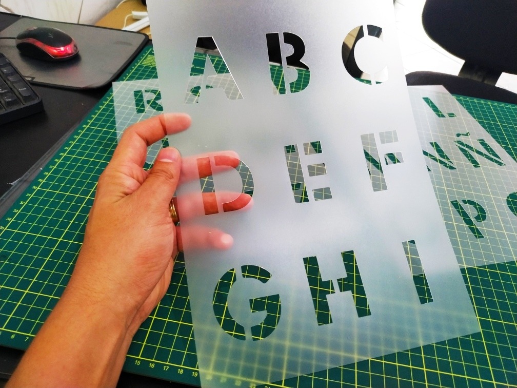 Os Stencils 2R Custom são confeccionados em material plástico flexível fosco, lavável e resistente a tintas e solventes.
